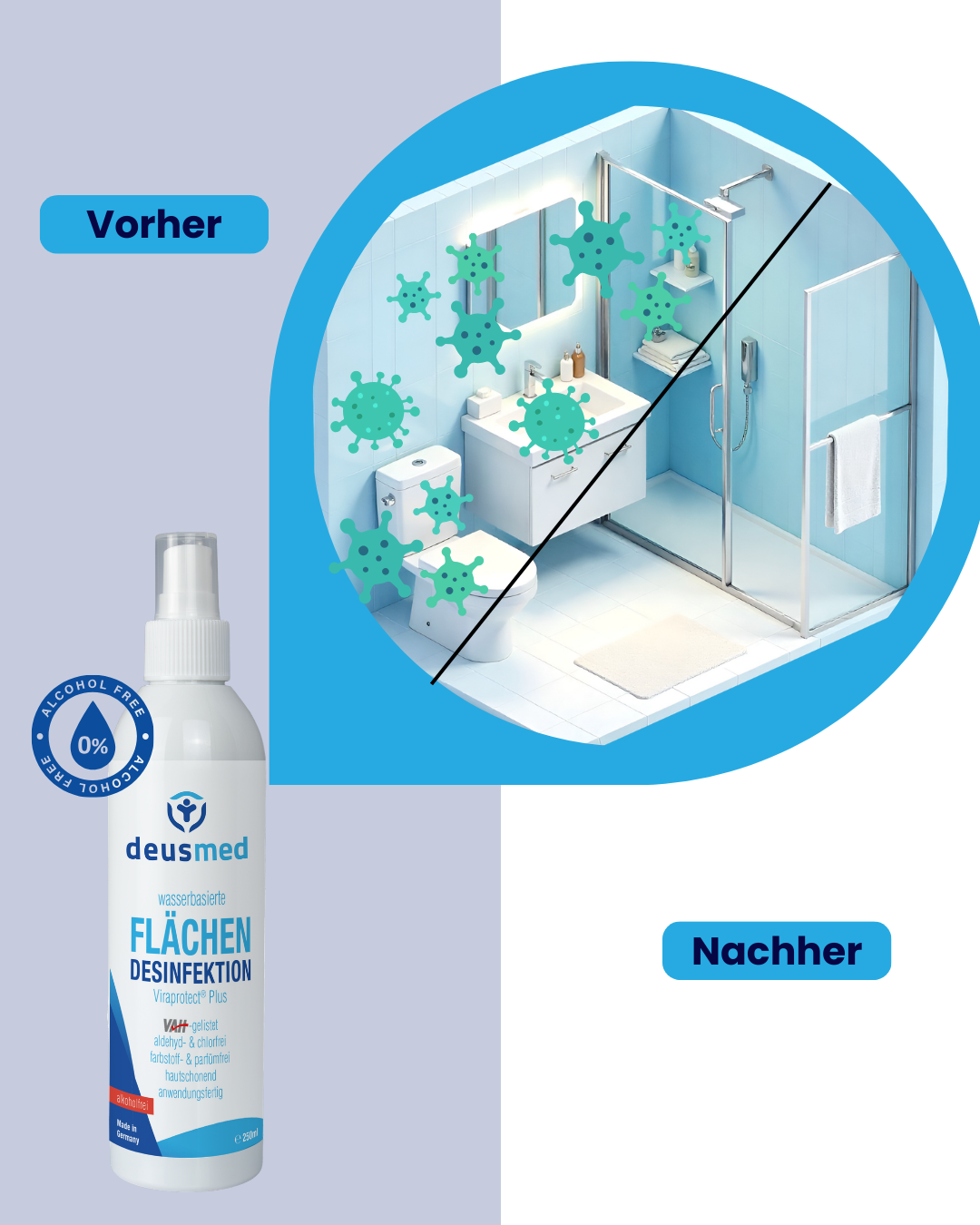 Deusmed® disinfectants are alcohol-free and completely water-based!