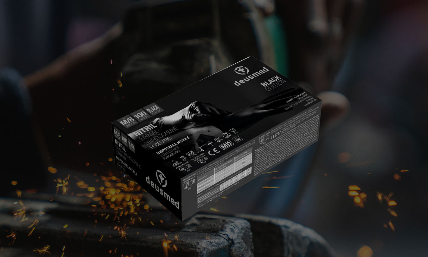 Die Deusmed Nitrilhandschuhe Black überzeugen durch extrahohe Reißfestigkeit, sind vollständig puderfrei und besonders robust. Perfekt für anspruchsvolle Arbeiten, bei denen Schutz, Komfort und Flexibilität entscheidend sind.
