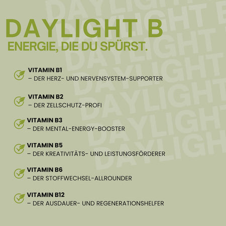 DayLight B – Dein täglicher Begleiter für mehr Energie, Fokus und Wohlbefinden.