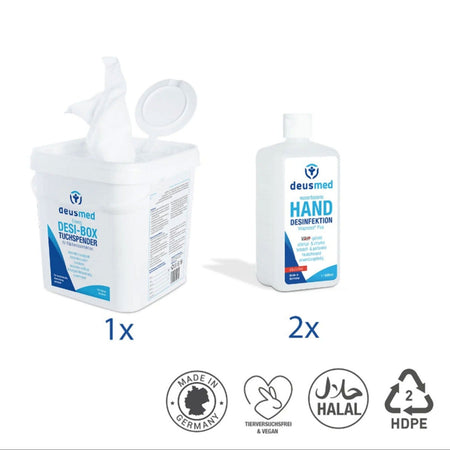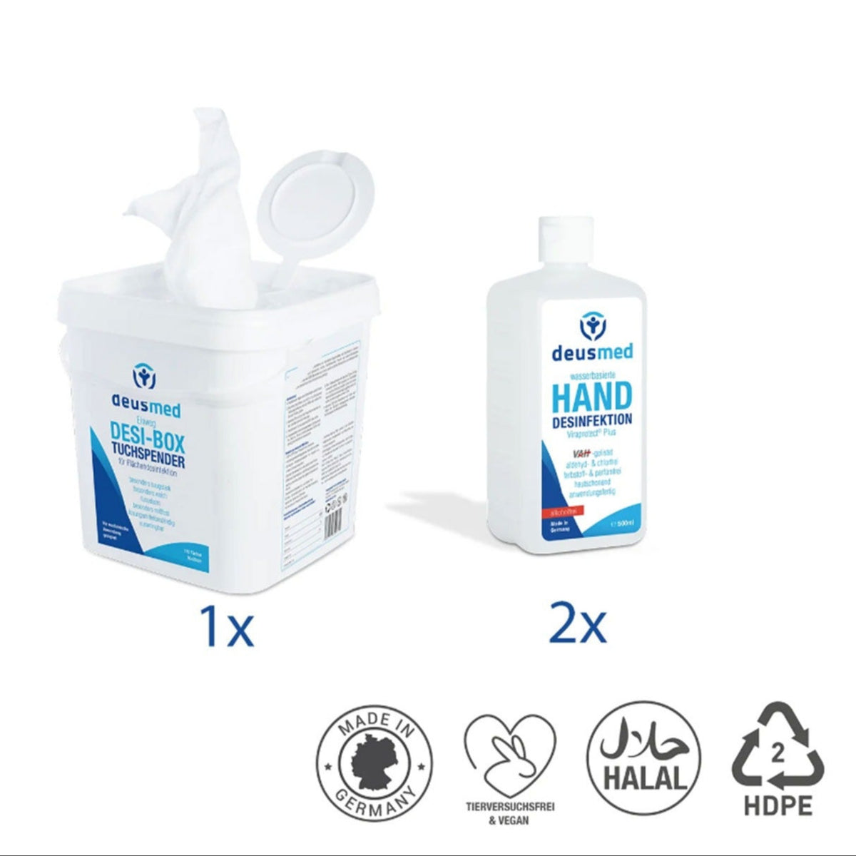 Deusmed alkoholfreie Hand- und Flächendesinfektionsmittel im Test Kit