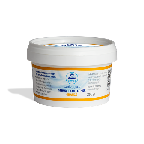 Ob in Küche, Bad, Schuhschrank, Auto oder Tierbereich – dieser effektive Helfer sorgt überall für spürbar frische Luft. Unser Deusmed Geruchsentferner ist ausschließlich in den Varianten Neutral, Orange und Zitrone erhältlich – und das aus gutem Grund: Diese enthalten keine Düfte, sondern ausschließlich natürliche Zitrusöle. Alle anderen Gerüche und Düfte würden neutralisiert werden.