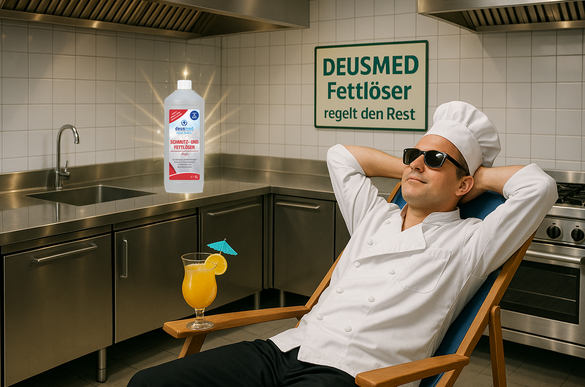 Schrubbst du noch? Fett, Schmutz, eingebranntes Schnitzel-Gemetzel – keine Chance gegen den DEUSMED Schmutz- und Fettlöser Profi! Während du deinen wohlverdienten Feierabend-Cocktail genießt, erledigt der Deusmed Schmutz- und Fettlöser den Rest für dich!