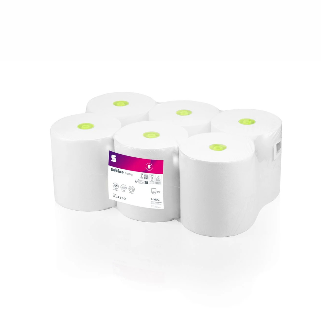 System-Handtuchrollen bestehend aus hochwertigem Zellstoff bietet eine angenehme Haptik sowie zuverlässige Hygiene.