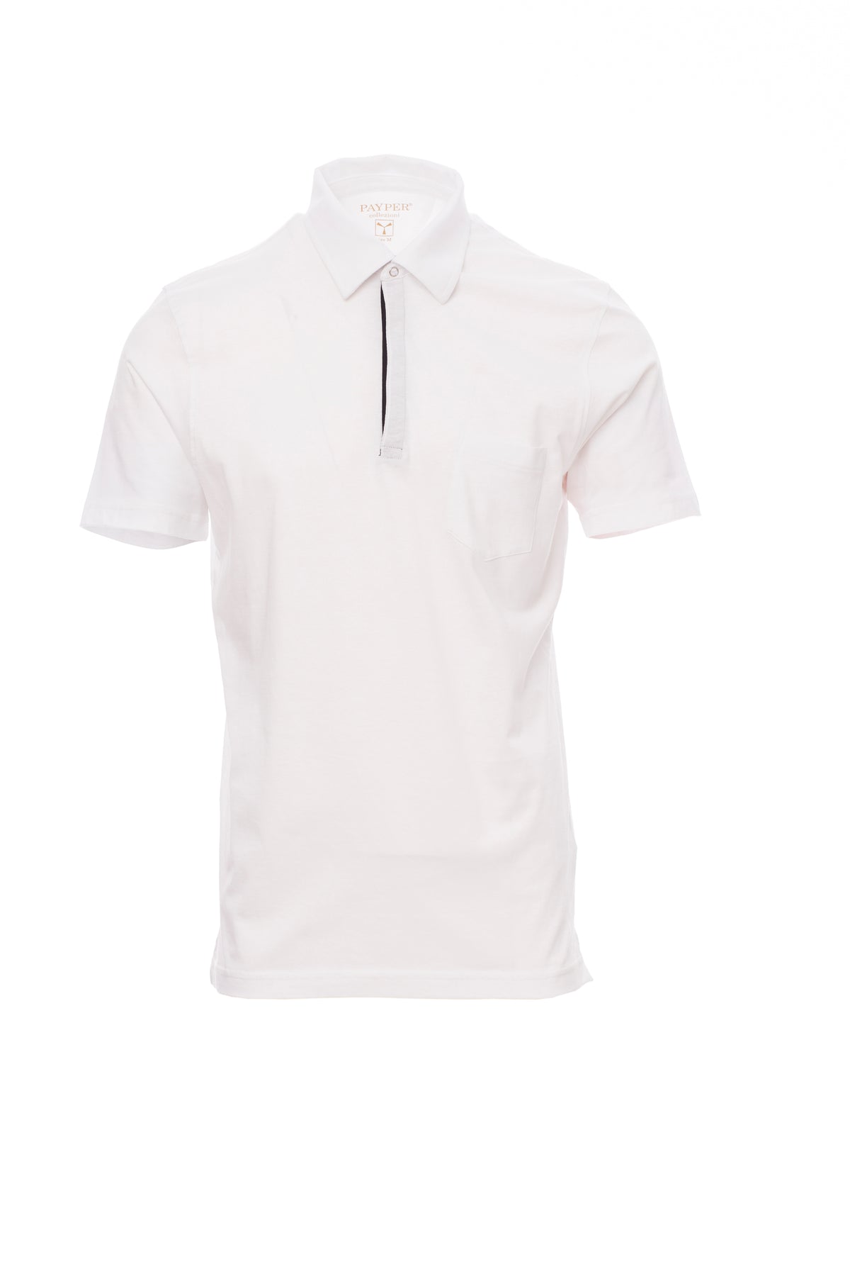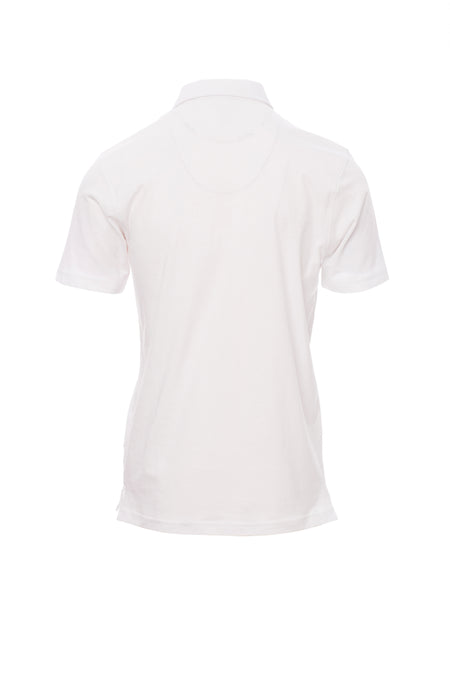Herren-Poloshirt, kurzärmelig, mit 3 Metalldruckknöpfen und einer tiefen, dezenten Öffnung des Kragens auf der Vorderseite, kleiner Brusttasche, Jerseykragen im Hemdenschnitt, Transfer-Etikett, Nackensattel