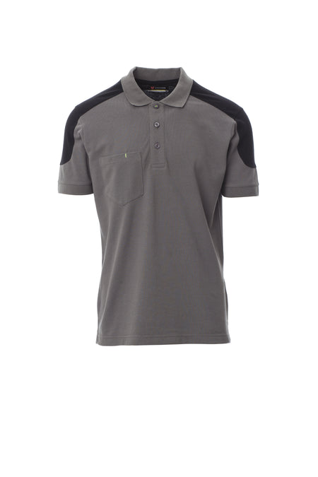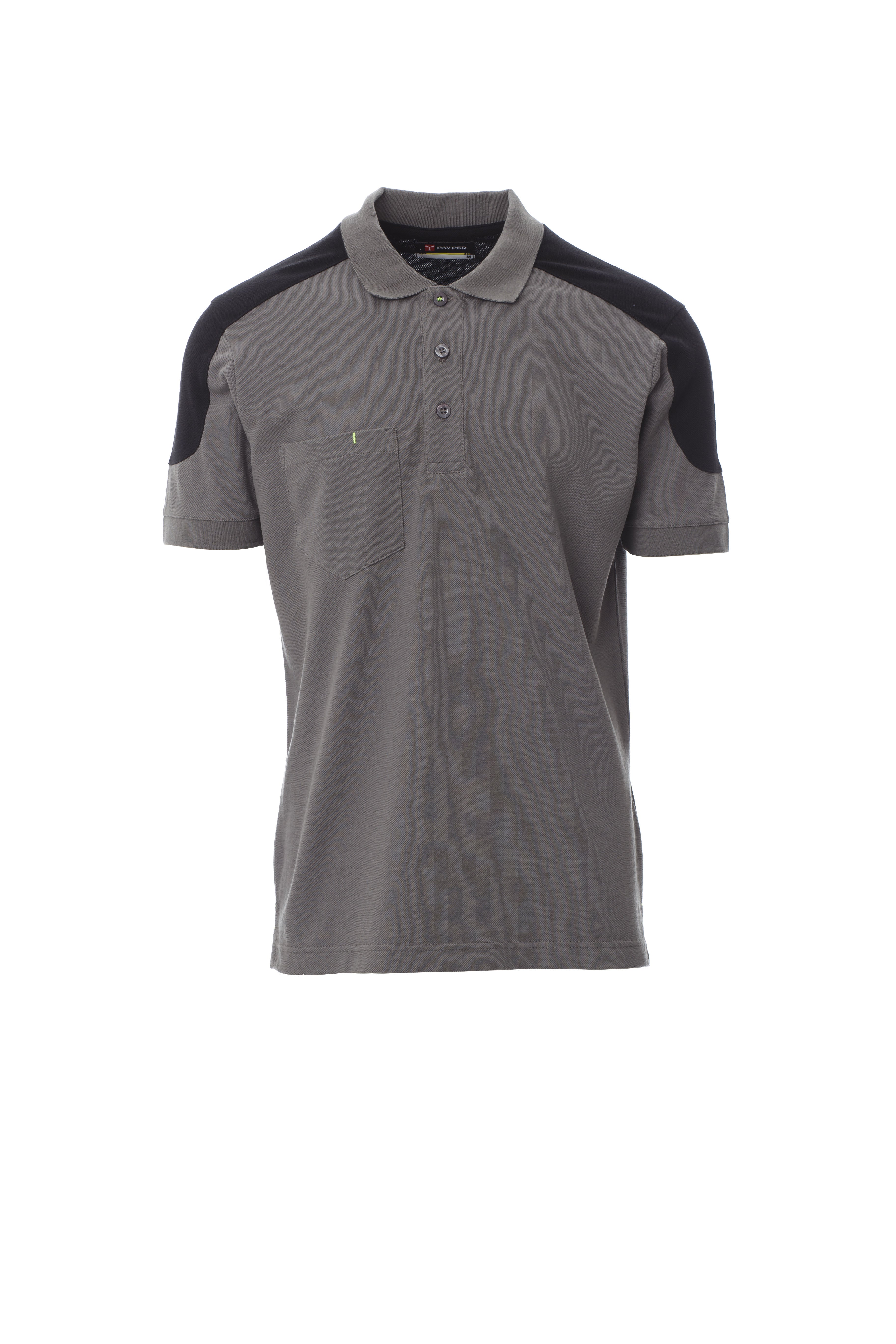 Zweifarbiges Polo-Shirt, kurzärmelig, 3 Knöpfe Ton-in-Ton, Brusttasche mit Stifthalter, Ärmelrand aus Feinripp, Seitenschlitze, Nackenband.