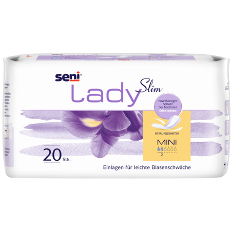 Die atmungsaktive, anatomische Inkontinenzeinlage für Frauen, Seni Lady Slim Mini, bietet perfekten Schutz bei Tröpfchen- und leichter Inkontinenz und garantiert: