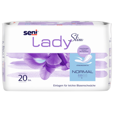 HM-Nr.: 15.25.30.5044 Die Seni Lady Slim Normal Einlagen sind ideal für aktive Frauen, die Tragekomfort, Diskretion und Sicherheit schätzen.